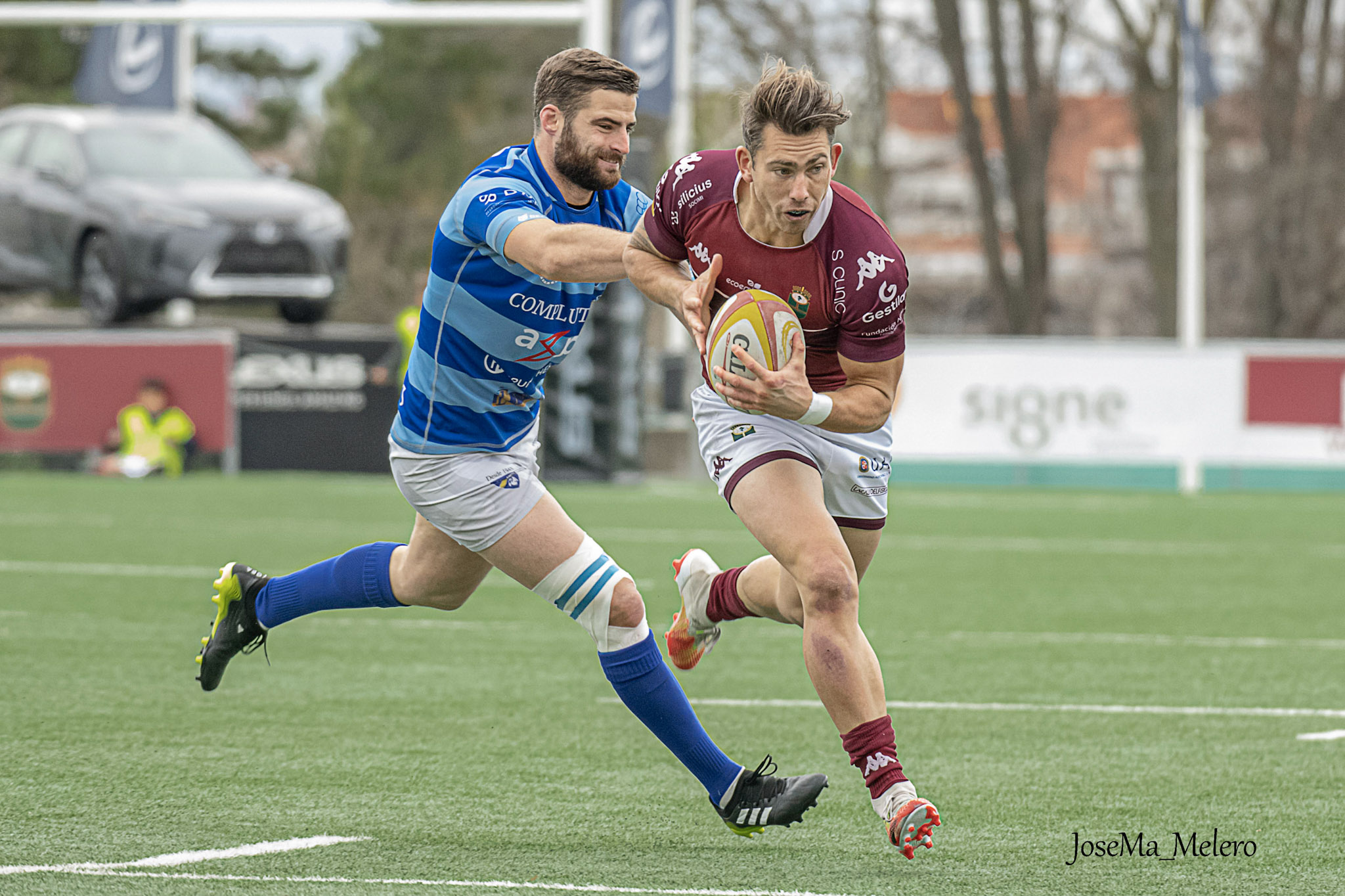 Y eso que la función comenzaba bien para los granates. En los primeros compases el equipo local colocaba el 12-0 en el luminoso con los ensayos de Jack Neville y Jano Cherr. El equipo se mostraba sólido y todo hacía presagiar que el encuentro podría ir por unos derroteros más cómodos que los que se vislumbraron con el paso de los minutos. De hecho, Cisneros no conseguía llegar a 22 pero Gonzalo Vinuesa con cuatro golpes de castigo puso el empate en el marcador. Los de Tiki querían acabar la primera mitad como la empezaron, imponiendo su ley y recuperaron sensaciones con el ensayo de Schab y el 19-12 tras el pateo de Granella.