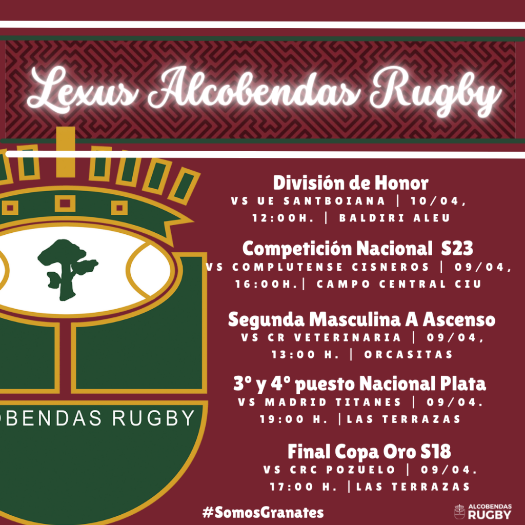 Lexus Alcobendas Rugby S23 concluye la temporada y lo hace en un duelo siempre especial frente a Complutense Cisneros. Los granates acumulan seis victorias consecutivas y buscan un séptimo triunfo en el derbi madrileño que ponga la guinda a este gran final de curso. El encuentro se disputará en el Campo Central CIU el sábado a las 16:00 h.