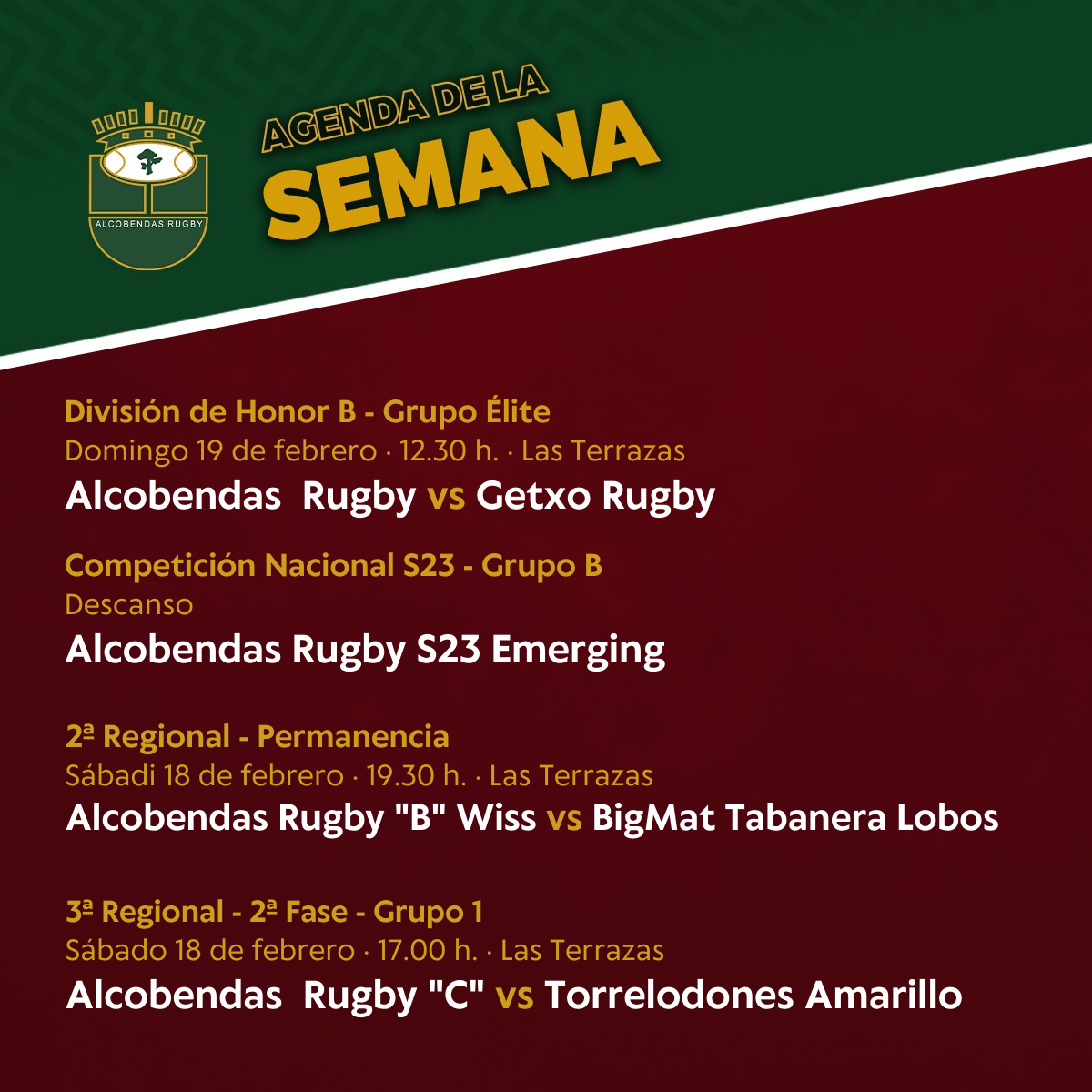 Alcobendas Rugby – Getxo Rugby | Domingo, 12.30 h. | Las Terrazas