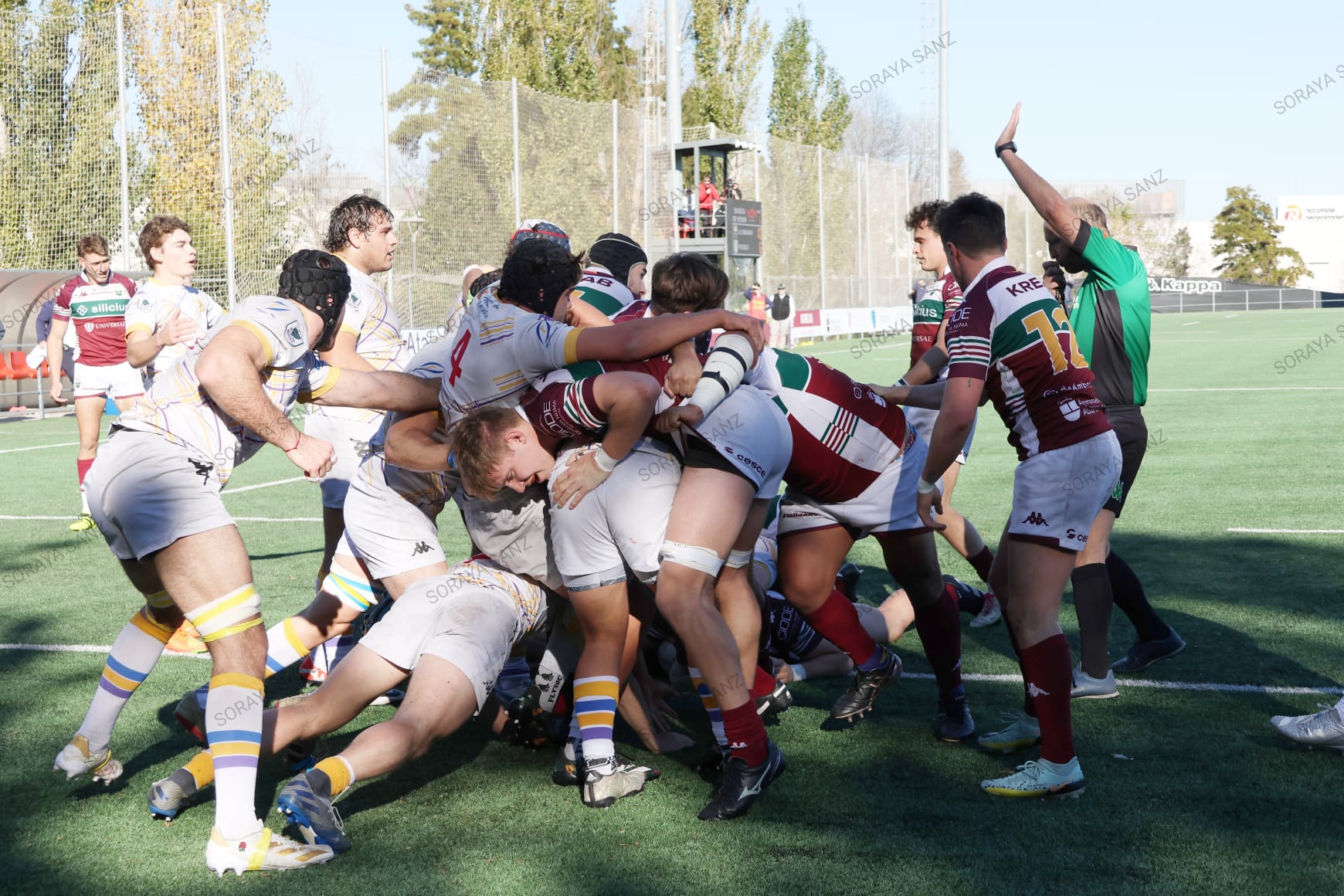 La segunda parte fue un constante intercambio de golpes entre ambos equipos. Los visitantes acortaron distancias con un ensayo, pero los nuestros iban a mantener un buen ritmo de anotación gracias a dos buenos golpes de castigo de Juan Diego Zabalegui (espectacular durante todo el encuentro) y a un espléndido ‘try’ de Santi.